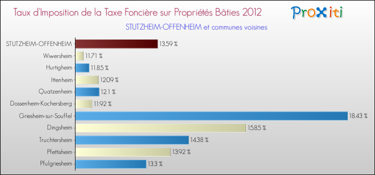 En 2012, le taux de la taxe foncière sur le bâti vôté par le conseil municipal de Stutzheim-Offenheim était de : 13.59 %.