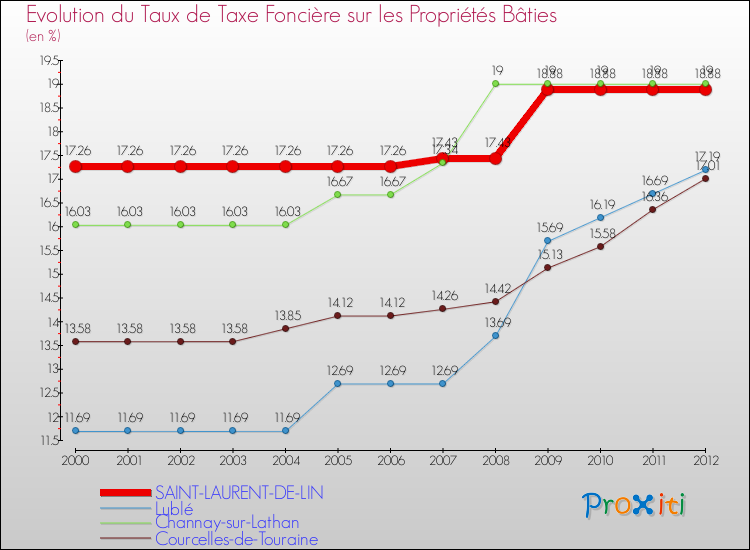A Saint-Laurent-de-Lin, le taux de taxe foncière sur le bâti a donc augmenté de 9.39 % entre 2000 et 2012.