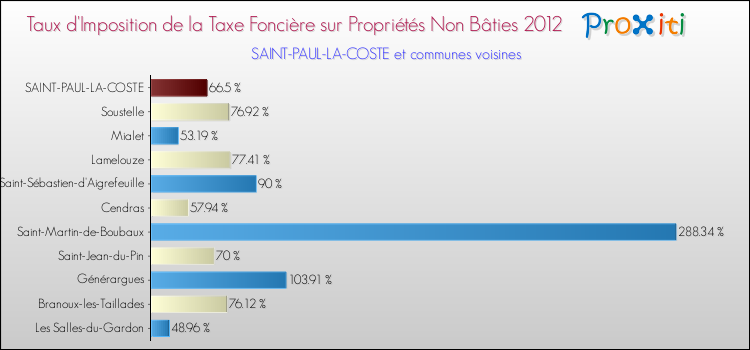 Pendant la même période, les communes françaises similaires à Saint-Paul-la-Coste, ont vu leur taux de taxe foncière sur le non bâti augmenter de 13.99 % en moyenne entre 2000 et 2012.