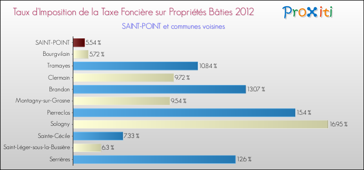 A noter : la valeur moyenne de ce taux de taxe foncière sur le bâti dans les communes françaises similaires à Saint-Point était de 11.88 %, en 2012.
