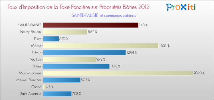 A noter : la valeur moyenne de ce taux de taxe foncière sur le bâti dans les communes françaises similaires à Sainte-Fauste était de 14.72 %, en 2012.