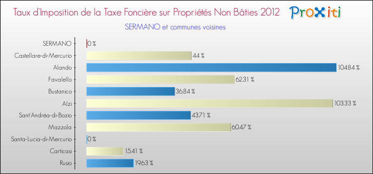 En 2012, le taux de la taxe foncière sur le non bâti vôté par le conseil municipal de Sermano était de : 0 %.
