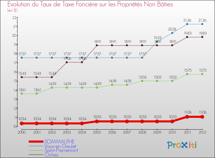 A Sommauthe, le taux de taxe foncière sur le non bâti a donc augmenté de 6.96 % entre 2000 et 2012.