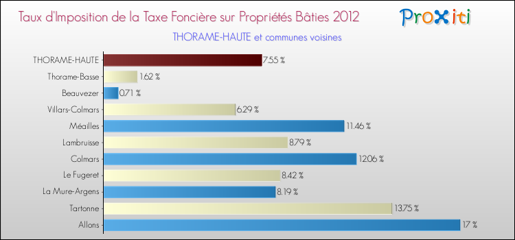 A noter : la valeur moyenne de ce taux de taxe foncière sur le bâti dans les communes françaises similaires à Thorame-Haute était de 10.09 %, en 2012.