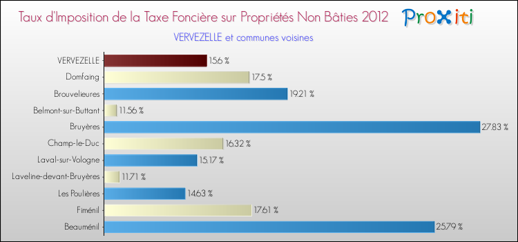 En 2012, le taux de la taxe foncière sur le non bâti vôté par le conseil municipal de Vervezelle était de : 15.6 %.
