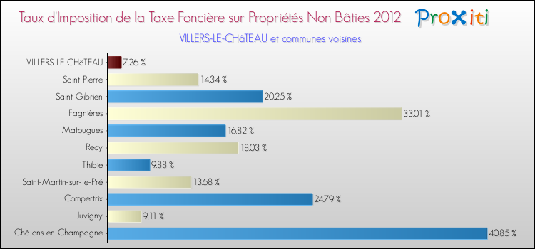 Pendant la même période, les communes françaises similaires à Villers-le-Château, ont vu leur taux de taxe foncière sur le non bâti baisser de 3.59 % en moyenne entre 2000 et 2012.