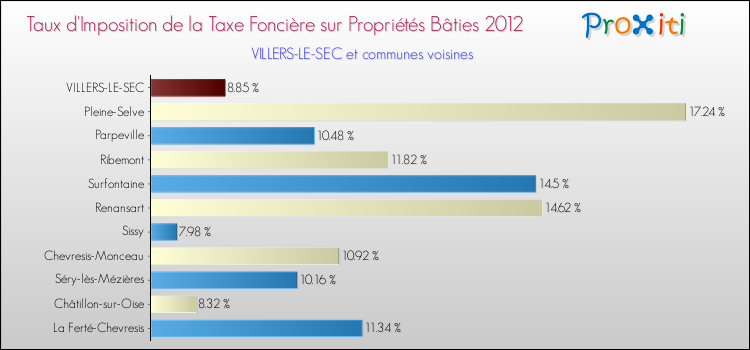 A noter : la valeur moyenne de ce taux de taxe foncière sur le bâti dans les communes françaises similaires à Villers-le-Sec était de 11.88 %, en 2012.
