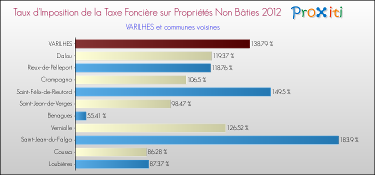 En 2012, le taux de la taxe foncière sur le non bâti vôté par le conseil municipal de Varilhes était de : 138.79 %.