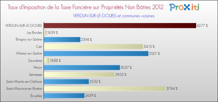 A noter : la valeur moyenne de ce taux de taxe foncière sur le non bâti dans les communes françaises similaires à Verdun-sur-le-Doubs était de 35.89 %, en 2012.