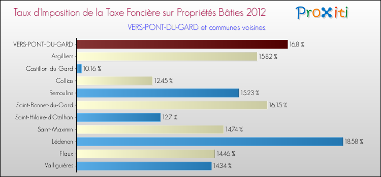 A noter : la valeur moyenne de ce taux de taxe foncière sur le bâti dans les communes françaises similaires à Vers-Pont-du-Gard était de 15.75 %, en 2012.
