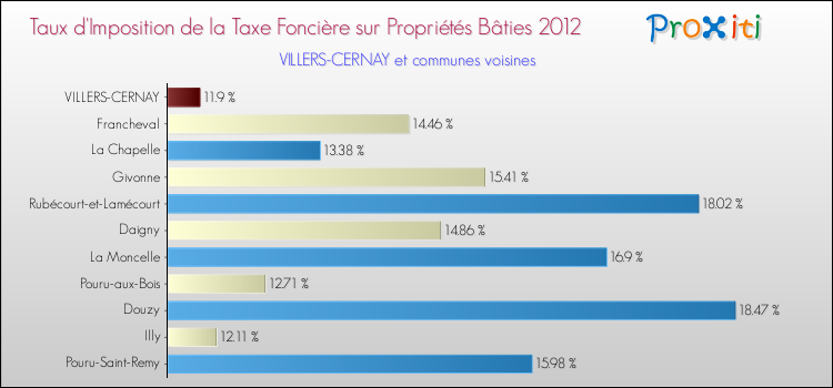 A noter : la valeur moyenne de ce taux de taxe foncière sur le bâti dans les communes françaises similaires à Villers-Cernay était de 11.88 %, en 2012.