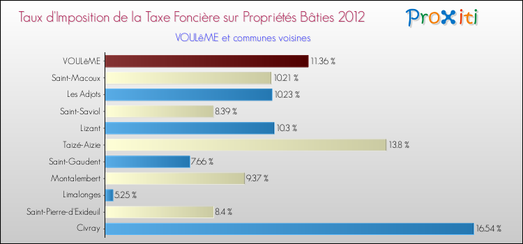 A noter : la valeur moyenne de ce taux de taxe foncière sur le bâti dans les communes françaises similaires à Voulême était de 11.88 %, en 2012.