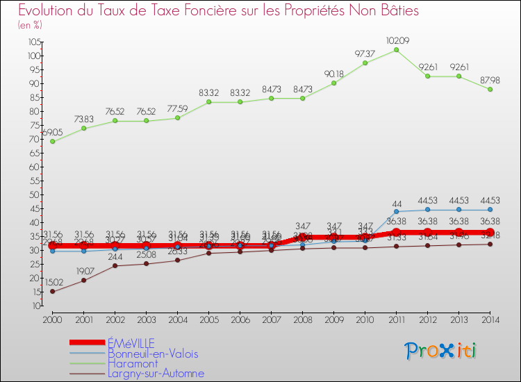A Éméville, le taux de taxe foncière sur le non bâti a ainsi augmenté de 15.27 % entre 2000 et 2014.