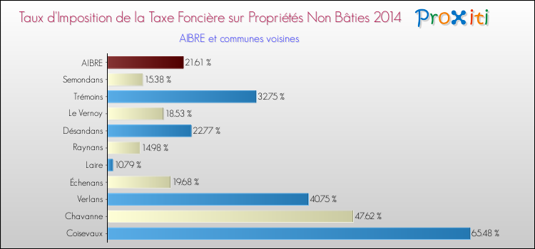 En 2014, le taux de la taxe foncière sur le non bâti vôté par le conseil municipal de Aibre était de : 21.61 %.