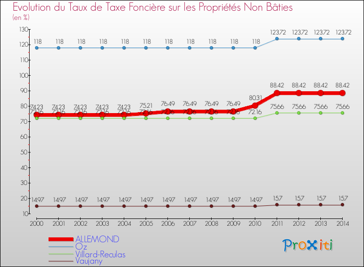 A Allemond, le taux de taxe foncière sur le non bâti a ainsi augmenté de 19.12 % entre 2000 et 2014.