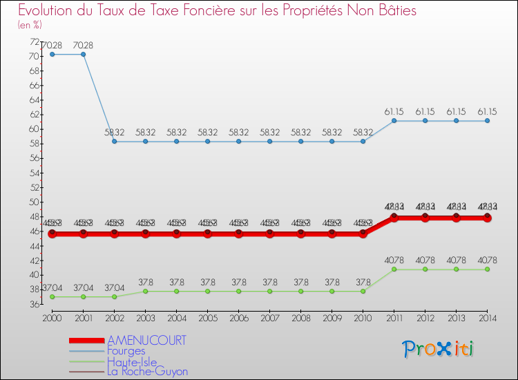 A Amenucourt, le taux de taxe foncière sur le non bâti a ainsi augmenté de 4.84 % entre 2000 et 2014.