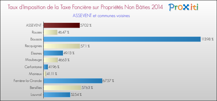 A noter : la valeur moyenne de ce taux de taxe foncière sur le non bâti dans les communes françaises similaires à Assevent était de 45.16 %, en 2014.