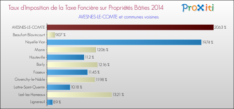 En 2014, le taux de la taxe foncière sur le bâti vôté par le conseil municipal de Avesnes-le-Comte était de : 20.63 %.