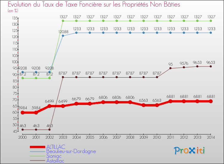 Depuis 2000, la commune de Altillac a donc plus augmenté son taux de taxe foncière sur le non bâti que les communes françaises similaires.