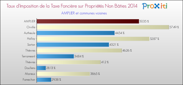 A noter : la valeur moyenne de ce taux de taxe foncière sur le non bâti dans les communes françaises similaires à Amplier était de 39.73 %, en 2014.