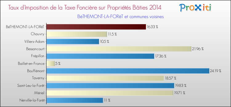 A noter : la valeur moyenne de ce taux de taxe foncière sur le bâti dans les communes françaises similaires à Béthemont-la-Forêt était de 11.9 %, en 2014.