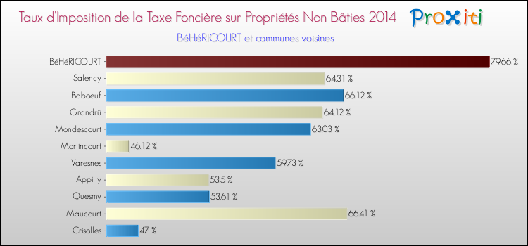 En 2014, le taux de la taxe foncière sur le non bâti vôté par le conseil municipal de Béhéricourt était de : 79.66 %.