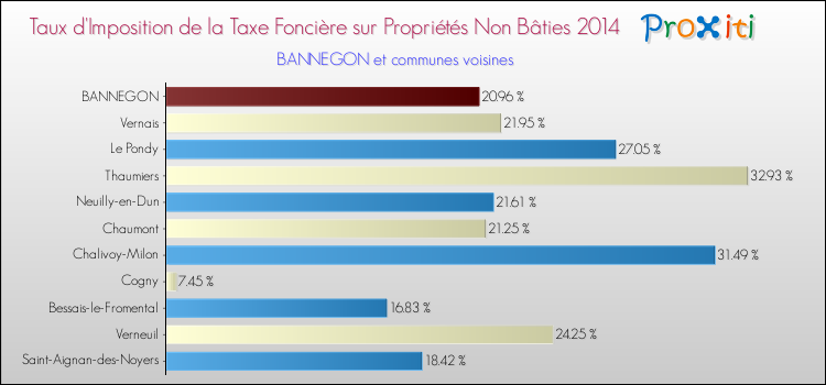 En 2014, le taux de la taxe foncière sur le non bâti vôté par le conseil municipal de Bannegon était de : 20.96 %.