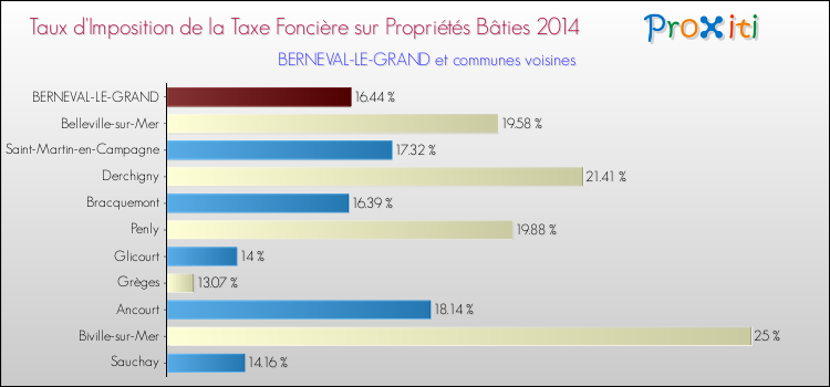A noter : la valeur moyenne de ce taux de taxe foncière sur le bâti dans les communes françaises similaires à Berneval-le-Grand était de 15.62 %, en 2014.