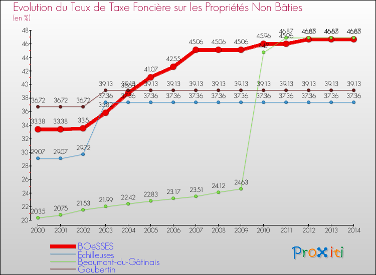 A Boësses, le taux de taxe foncière sur le non bâti a ainsi augmenté de 39.75 % entre 2000 et 2014.