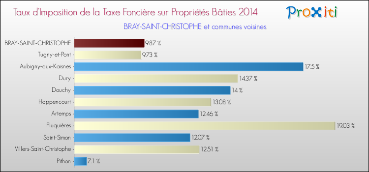 A noter : la valeur moyenne de ce taux de taxe foncière sur le bâti dans les communes françaises similaires à Bray-Saint-Christophe était de 13.44 %, en 2014.