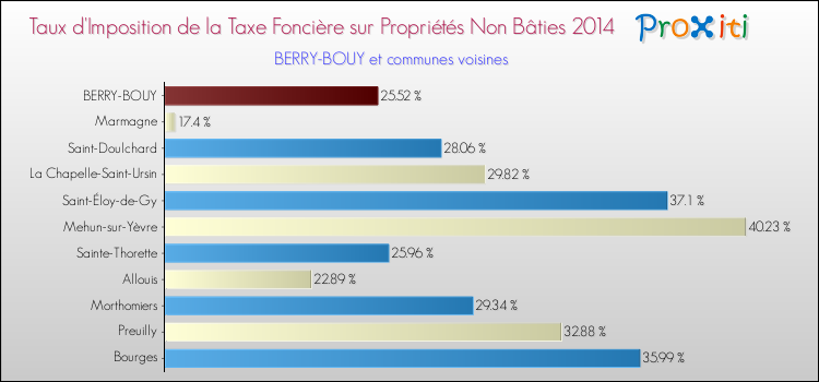 A Berry-Bouy, le taux de la taxe foncière sur le non bâti est donc moins élevé de 43.49 % que pour des communes similaires.