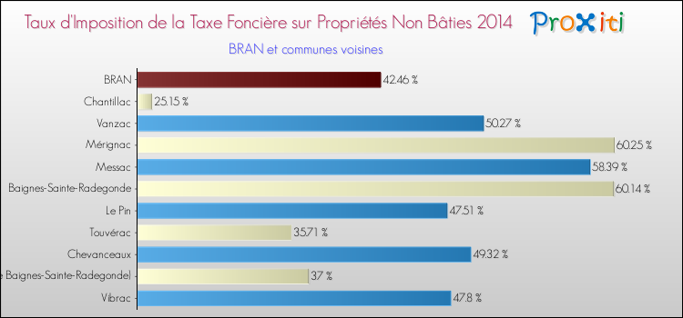 A noter : la valeur moyenne de ce taux de taxe foncière sur le non bâti dans les communes françaises similaires à Bran était de 24.58 %, en 2014.