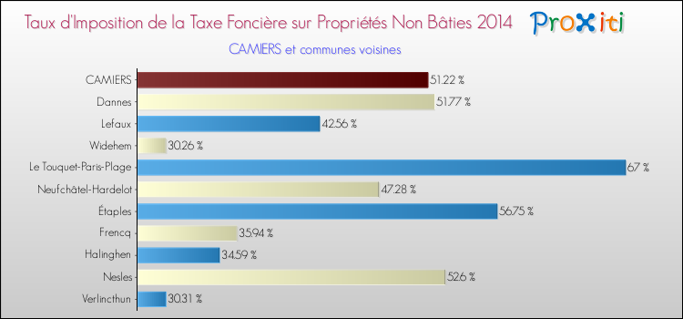 En 2014, le taux de la taxe foncière sur le non bâti vôté par le conseil municipal de Camiers était de : 51.22 %.