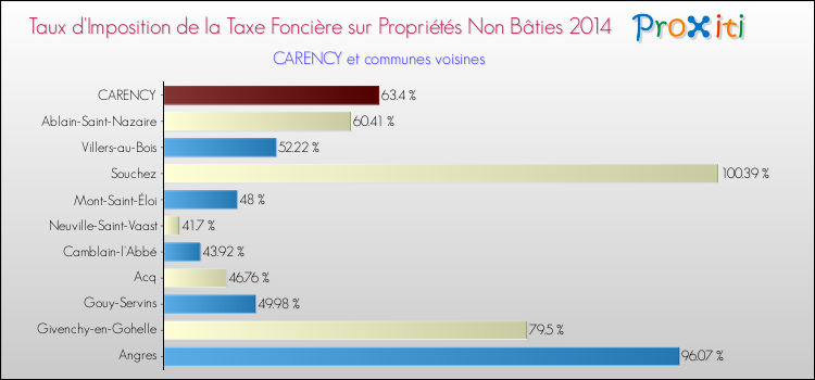 Comparaison des taux d'imposition de la taxe foncière sur les immeubles et terrains non batis 2014 pour CARENCY et les communes voisines