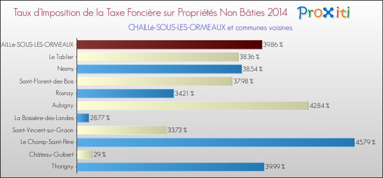 En 2014, le taux de la taxe foncière sur le non bâti vôté par le conseil municipal de Chaillé-sous-les-Ormeaux était de : 39.86 %.