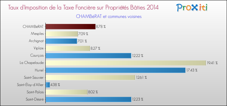 Comparaison des taux d'imposition de la taxe foncière sur le bati 2014 pour CHAMBéRAT et les communes voisines