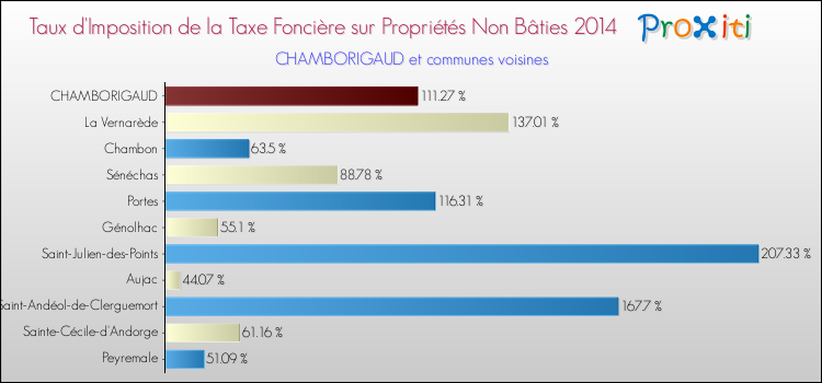 En 2014, le taux de la taxe foncière sur le non bâti vôté par le conseil municipal de Chamborigaud était de : 111.27 %.