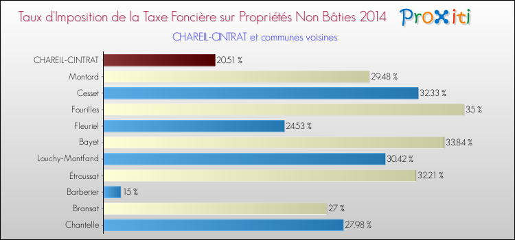 En 2014, le taux de la taxe foncière sur le non bâti vôté par le conseil municipal de Chareil-Cintrat était de : 20.51 %.