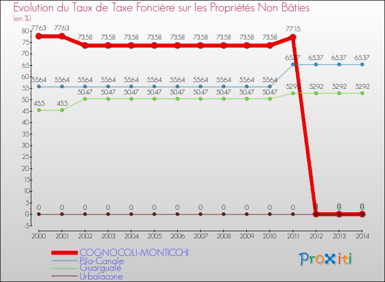 A Cognocoli-Monticchi, le taux de taxe foncière sur le non bâti a ainsi baissé de 100 % entre 2000 et 2014.