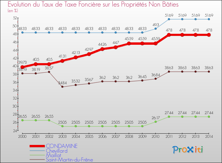 A Condamine, le taux de taxe foncière sur le non bâti a ainsi augmenté de 20.31 % entre 2000 et 2014.