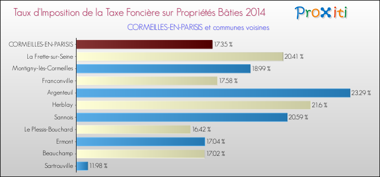 A noter : la valeur moyenne de ce taux de taxe foncière sur le bâti dans les communes françaises similaires à Cormeilles-en-Parisis était de 23.13 %, en 2014.