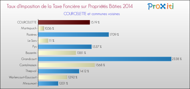 A noter : la valeur moyenne de ce taux de taxe foncière sur le bâti dans les communes françaises similaires à Courcelette était de 13.44 %, en 2014.