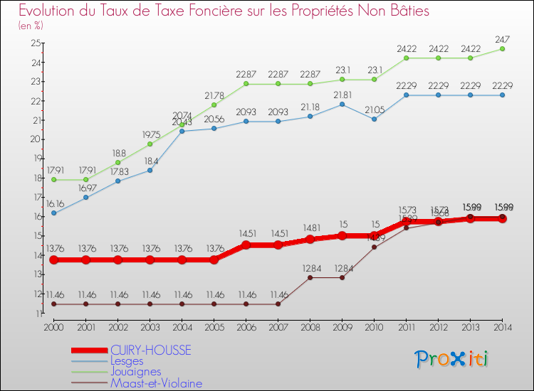 A Cuiry-Housse, le taux de taxe foncière sur le non bâti a ainsi augmenté de 15.48 % entre 2000 et 2014.