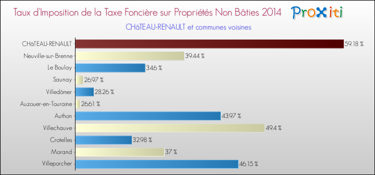 En 2014, le taux de la taxe foncière sur le non bâti vôté par le conseil municipal de Château-Renault était de : 59.18 %.