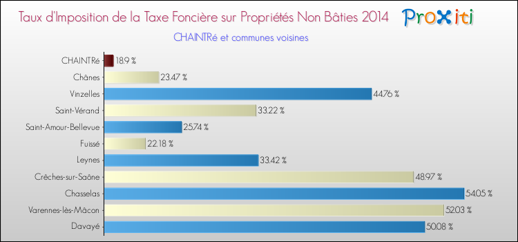 En 2014, le taux de la taxe foncière sur le non bâti vôté par le conseil municipal de Chaintré était de : 18.9 %.