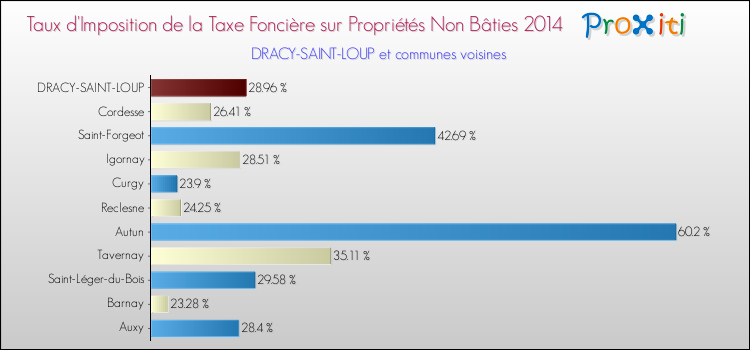 En 2014, le taux de la taxe foncière sur le non bâti vôté par le conseil municipal de Dracy-Saint-Loup était de : 28.96 %.