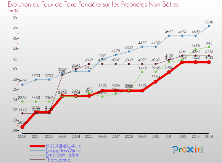 A Enguinegatte, le taux de taxe foncière sur le non bâti a ainsi augmenté de 44.06 % entre 2000 et 2014.