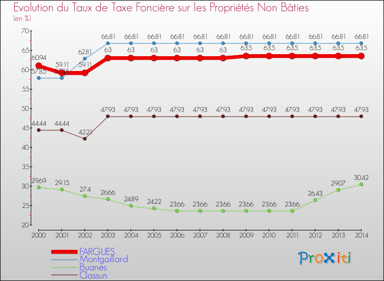 A Fargues, le taux de taxe foncière sur le non bâti a ainsi augmenté de 4.2 % entre 2000 et 2014.