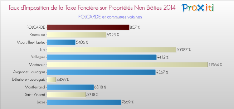 Vous trouverez ci-dessous des graphiques qui vous permettent de situer le taux de la taxe foncière sur le non bâti de Folcarde par rapport aux communes voisines.