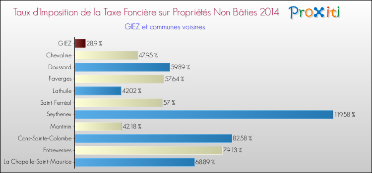 En 2014, le taux de la taxe foncière sur le non bâti vôté par le conseil municipal de Giez était de : 28.9 %.